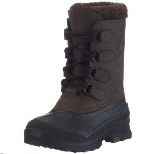 Ботинки женские зимние Kamik Alborg Lady — классические зимние коричневые ботинки представляют собой сочетание стиля и комфорта. Благодаря водостойкому материалу вы будете готовы даже к самой суровой погоде. В этих ботинках тепло и комфортно в холодную зиму, они всегда сохранят ноги в тепле. Кожаные ботинки имеют шнурки и съемную подкладку из полиэстра с удобным язычком на пятке. Теплые зимние ботинки канадской фирмы Kamik изготовлены из водонепроницаемого нубука. Специально обработанная кожа отталкивает воду и слякоть, все швы герметичны и проклеены. Легкая подошва обеспечивает отличное сцепление на снегу. Резиновый защитный обод подошвы обеспечивает более прочную конструкцию.