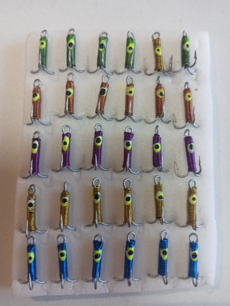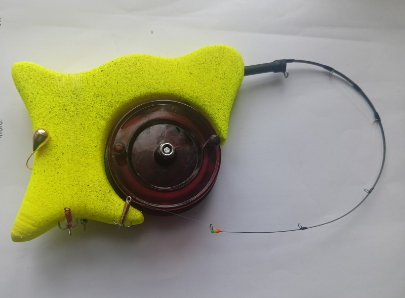 Вудочка виготовлена з твердого пінопласту, комплектується конусним металевим кивком довжиною 22 см з тестом 3-5 г. Оснащується лескою Konger або Jaxon діаметром від 0,12 до 0,18 мм, різнокольоровими чортиками в кількості від 3 до 6 шт і важкою вольфрамовою мормишкою