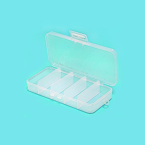 Небольшая односторонняя коробочка для хранения рыболовных мелочей с фиксированными перегородками.
