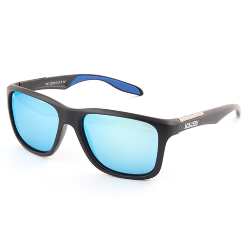 Солнцезащитные очки для рыбалки с поляризационными линзами серого цвета с зеркальным напылением голубого цвета. Рекомендуются к использованию в солнечную погоду. Мягкий чехол в комплекте.