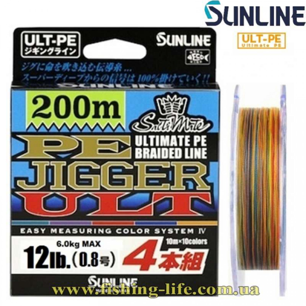 Шнур Sunline PE-Jigger ULT 4 Braid — новая модель в ассортименте японского производителя, которая предназначена для джиговой рыбалки на больших глубинах. Он выполнен из усовершенствованного четырёхжильного материала ULT-PE, который отличается высокой прочностью, низкой растяжимостью и хорошими показателями устойчивости к истиранию. Стоит также учесть дополнительные обработки, которые проходит волокно перед наматыванием на бобину — LSP (Low Stretch Processing) и SSP (Smooth Surface Processing). Первая технология уменьшает степень растяжения шнура при максимальных нагрузках, благодаря чему увеличивается чувствительность снасти, а вторая делает его поверхность более скользкой и плотной, что сказывается на дальности заброса и устойчивости к абразиву. Для лучшего контроля снасти во время ловли PE-Jigger ULT 4 Braid имеет яркую хорошо заметную окраску, которая включает 5 разных цветов, сменяющихся через каждые 10 метров, на каждом из которых нанесены дополнительные маркеры. Это позволяет контролировать дальность заброса, место нахождения приманки и визуально идентифицировать поклёвку.