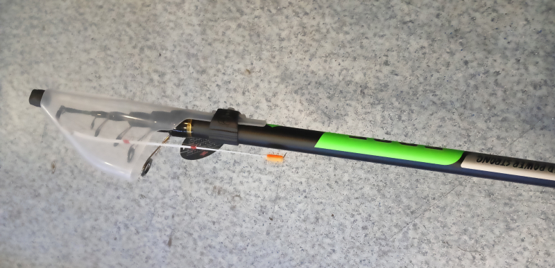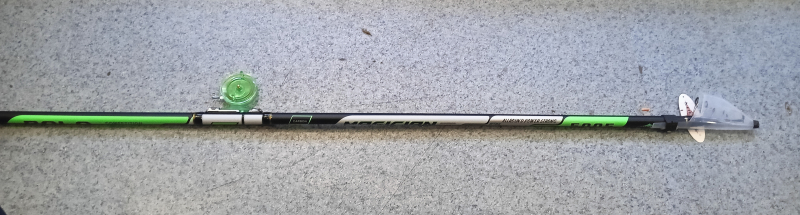 Оснащена карбонова вудочка з боковим кивком із лавсана 20 см з тестом до 1 г. Комплектується проводочною котушкою з 15 метрами плетеного шнура діаметром 0,13 мм (9 кг) та паяною мормишкою вагою 0,5-0,7 г на карася. Вага вудлища вказана без урахування котушки