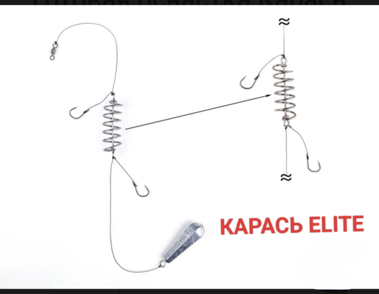 Виготовляється з однієї нержавіючої пружини з короткими повідцями на 2 гачка Kumho (Корея). Всі елементи в’яжуться на оригінальному плетеному шнурі Power Pro