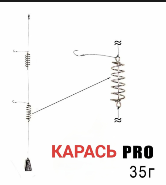 Виготовляється з двох нержавіючих пружин з короткими повідцями на 2 гачка Kumho (Корея). Всі елементи в’яжуться на оригінальному плетеному шнурі Power Pro