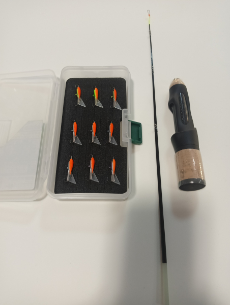 Розбірна безкивкова зимова вудочка для ловлі на мікробалансири та зимові блешні. Тест до 5 г. Вага 45 г. Транспорт.довжина 37,5 см